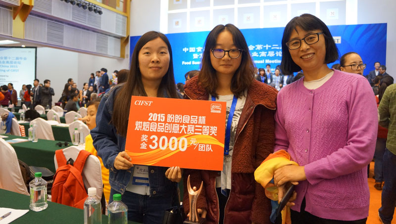 2015年10月21日,2015“盼盼食品”杯烘焙食品创意大赛颁奖仪式在大连举办,时值中国食品科学技术学会第十二届年会暨第八届中美食品业高层论坛召开之际。员工代表杨娣、盛晔琦,指导教师徐艺青、304永利集团团委书记刘海燕、辅导员张明婧参加了大会。