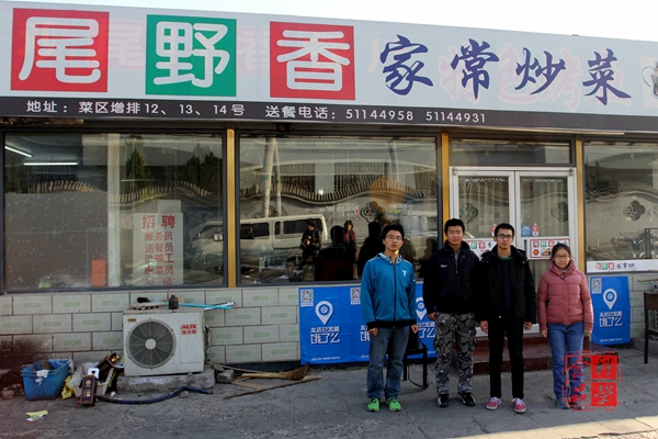 餐馆是由公司2009级毕业生卢亚光和王浩楠合办,戴着黑框眼镜,留着寸头的他们,眼神中显示着英气,年轻的脸庞上透露着对于未来的向往,以及年轻人难得的沉稳。尾野香餐馆坐落于北农公司后门,沿街营业,如果不是有人指引,我绝对不会知道这是一家由北农老员工自己开的店,也不会知道在这家店里发生的一个有关青春与梦想的故事。