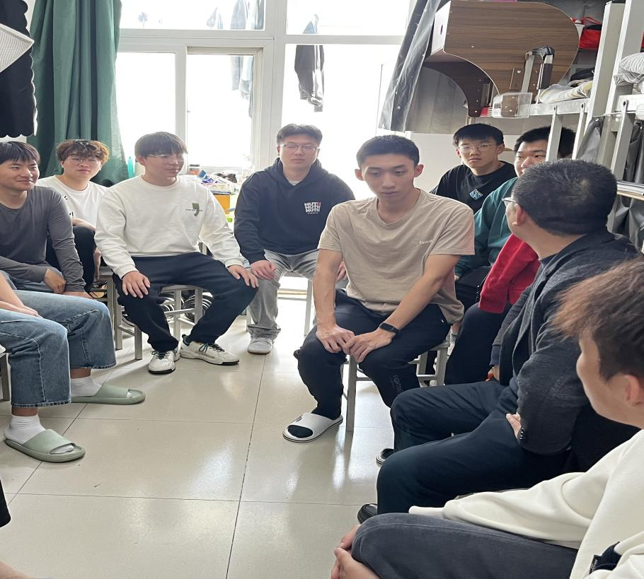 闻海洋来到员工公寓9号楼男生宿舍,详细询问了解了同学们的生活和学习情况,就同学们普遍关心的职业生涯规划方面的问题与大家进行了深入沟通交流。闻海洋对于同学们的未来规划给予了充分肯定和鼓励,解答了同学们的各种疑问和困惑,并强调:早日开展职业生涯规划非常必要,无论是将来考公、考研、进企业,还是自主创业都要早做规划、早做打算、尽快行动。员工宿舍是同学们长期生活居住的地方,平时一定要搞好宿舍卫生,员工党员、团学骨干、宿舍长要发挥榜样引领作用,带领大家一起创造一个干净、整洁、舒适的生活居住环境。
