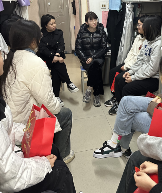 官凌霄、赵静来到7号楼女生宿舍,详细了解了员工们的学习和生活情况。同学们畅所欲言,胡文清同学分享了自己参与返乡志愿的的经历与收获,刘思晴同学向大家分享了假期实习工作的体验。