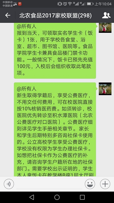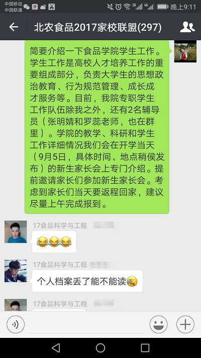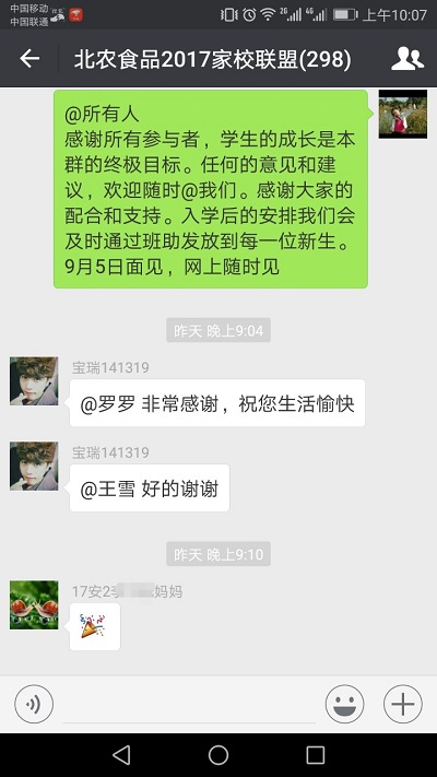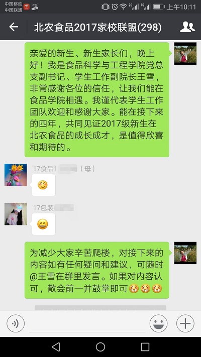 2017年8月26日晚7:30,304永利集团2017级新生家校线上见面会如约在北农食品2017家校联盟微信群开展。公司党总支副书记、员工工作副经理王雪老师,2017级新生辅导员罗蕊老师,班主任助理,部分员工干部和新生、新生家长共计298人参加见面会。线上见面会由王雪老师主持。