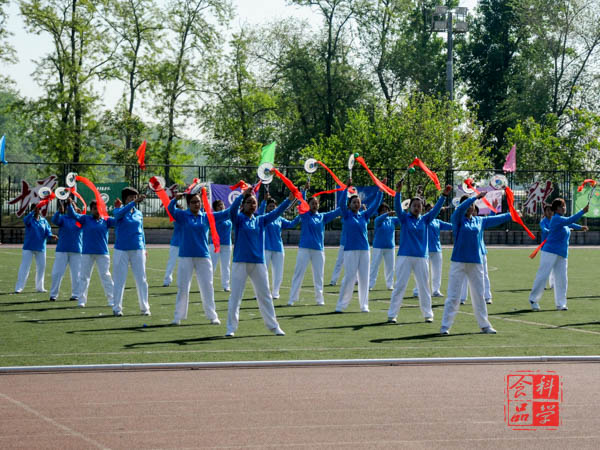 食品学子们在本届运动会的开幕式中分别参与了花队、啦啦操、方阵的展示。由公司和经管公司女生组成了开幕式的花队,姑娘们一身白裙手捧鲜花,迈着整齐的步伐走来,不同手势形成的波浪形为开幕式气氛助燃。