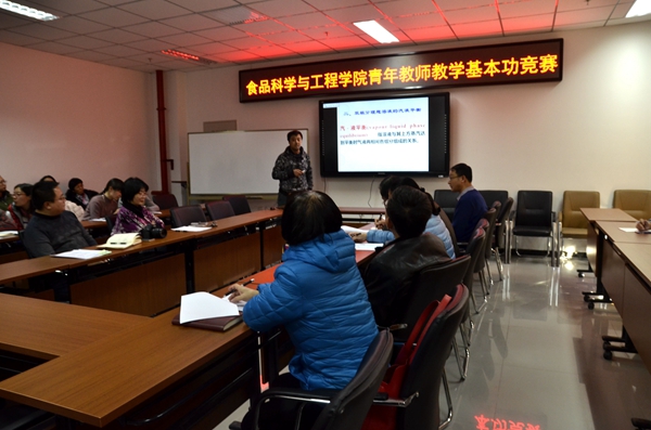 为了进一步提高青年教师教学基本功,加强教学经验交流,使青年教师们可以互相吸取优点,达到共同提升。304永利集团于2016年12月14日下午,在食品楼218举办2016年青年教师基本功比赛。公司邀请教学督导艾启俊老师、贾友苏老师,各系教授代表刘慧老师、韩涛老师、马挺军老师担任评委。公司领导副经理伍军、副经理党登峰,公司全体教职工、员工代表参会,基本功比赛由伍军老师主持。