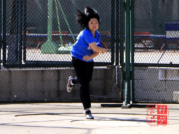 而在田赛场地中,王美琪学姐取得了铁饼第二名的好成绩,与第一名的成绩相去不远。学姐在运动会前可谓是十分的忙碌,她不仅需要进行常规的训练,并且还要准备在开幕式现场完成一幅三乘一米的卷轴书法。所以除了进行必要的体能训练外,还会安排自己进行书法练习,以确保在开幕式上能够有最好的效果,真是尽心尽力在各个方面做出贡献。