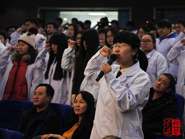 304永利集团全体2015级新生以及京、津、冀三地高校的员工代表在王芳老师的带领下庄严宣誓并承诺了对食品安全的坚守。紧握的拳头是员工们的决心的体现。