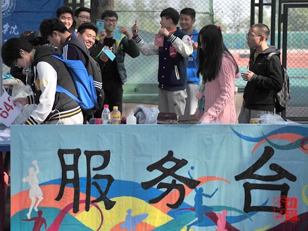 早上七点钟,志愿者们准时到达操场外的服务台,搬着沉重的桌椅和精心制作的提示板,开始了琐碎而忙碌的一天。你看,她们在运动场、观众台、服务台的各个角落,为保证赛事的正常进行而奋斗着。她们有些全程都无法观看比赛,无法为自己的同学加油呐喊,但她们恪守在自己的职位上,为运动员们做好后勤与服务。通知运动员检录、为运动员发放号牌、到跑道尽头迎接比赛结束的运动员、带领观众为比赛的同学们加油……这些工作虽然琐碎,但却是整场运动会必不可少的。他们的身边没有掌声,没有呐喊,他们只是这么默默的做好自己的本职工作,为这场比赛付出着。