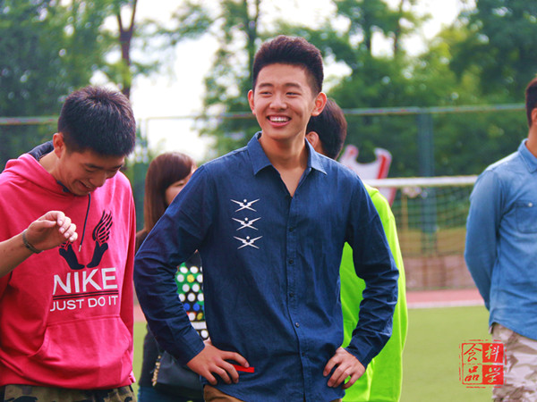 上午8:30,全体大一新生来到操场,听完这次活动的组织人员宣布完此次活动的规定后,便开始进行第一个游戏:人椅。所有同学在组织者的指挥下围成一个圆圈,调整好距离后一起向左转,搭住前一个人的肩膀,听到“坐”的口令后一起向下坐。这个游戏需要同学们相互的信任和极高的默契。一开始同学们还有些不好意思,男生和女生之间距离也比较大,但为了游戏顺利进行,大家也渐渐忘记了害羞,主动和两边的人沟通,相互配合,完成了这个游戏。