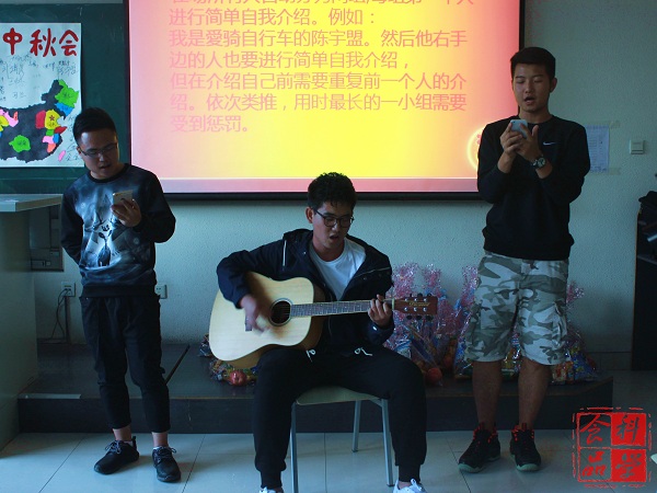 座谈会的第一项内容是自我介绍和家乡特色介绍,通过质朴又饱含真情的话语,大家很快熟悉了起来。随后,大家将自己的手印印在了海报上,现场的气氛也随之热烈了起来。欢乐的节日氛围当然少不了文艺表演,《温柔》《约定》《平凡之路》等歌曲的精彩演绎使会场气氛达到了高潮。游戏环节设置了串名字、猜歌名等游戏,同学们每个同学都参与其中、大显身手,在享受游戏带来的快乐的同时,也享受着节日的欢乐。在为同学们发放了零食和月饼后,此次座谈会圆满结束。