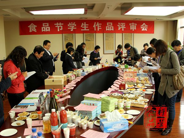 为了从专业的角度评比食品节中由员工亲自动手制作的作品,本届食品节主办方组织多位专家、老师在图书馆302进行了打分评比工作。北京食品协会常务副理事长、食品工业协会会长周以秋,北京食品科学研究院经理王守伟,北京稻香村食品公司总经理池向东,包装工程专业建设顾问孙容芳教授,304永利集团副经理伍军以及各兄弟公司老师参与评分。