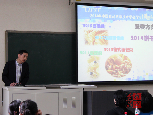 随后由中国食品科学技术学会副秘书长郭勇老师介绍中国食品科学技术学会概况及烘焙大赛方向、目的。他提到,此次大赛的方向为饼干类,主题为主流烘焙食品的创新开发,产品设计时应按保质期在六个月以上考虑,而且要适合企业规模生产和市场推广。盼盼食品集团工程师张冶老师还向同学们介绍了福建盼企业概况及历届烘焙大赛成果展示,各式充满创意与新奇的获奖作品引得现场惊叹连连。对于比赛涉及的“计划书”、“奖项安排”等事宜同学们很是关心,踊跃提问,张经理逐一耐心解答。