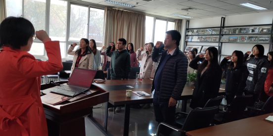 最后,党总支副书记、副经理王雪带领听课的师生党员重温了入党誓词,字字铿锵有力,勉励党员同志们不忘入党初心和使命,继续努力奋斗。