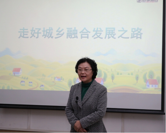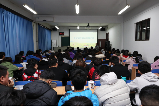 王慧敏董事长从一二三产业分类引入,从城乡融合发展的重要意义、历程及成效、不平衡的现状和新路线图等四个方面为大家全面阐述解读了城乡融合发展的“前世今生”。着重强调了城乡融合发展是我国实施乡村振兴战略、实现“两个一百年”奋斗目标的必然要求,是我国经济社会发展进入新时代的客观要求;从人(户籍制度松绑)、地(农村承包地“三权分置”制度)、钱(农村金融服务)等要素自由流动加大、农村基础设施和公共服务日趋完善、城乡居民收入差距逐步减小等方面展示了城乡融合发展历程及取得的成效;通过提问交流,与师生们讨论分析了当前城乡融合发展不平衡现状的具体表现;描绘了通过促进城乡要素合理配置、推动城乡基本公共服务普惠共享、加快推动乡村基础设施提档升级、推动乡村经济多元化、促进农民收入增长等途径全面推进城乡融合发展的新路线图。