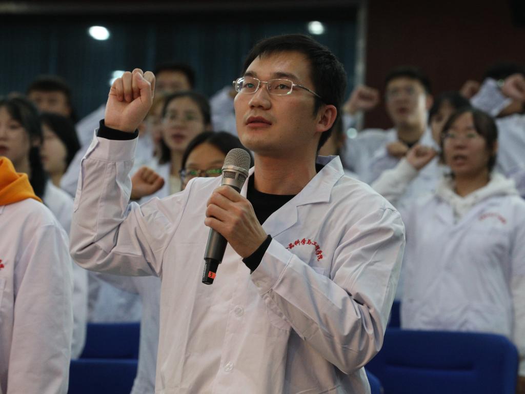 首先由新入职的教师李宏亮带领全体新生进行了食品人入行宣誓。新生们穿着整洁的实验服,怀着一颗炙热的心,精神饱满的大声宣誓。宣誓仪式代表着新生们已肩负起作为食品人的责任,并且责任会伴着他们的成长。他们将是未来食品行业一颗颗冉冉升起的新星,怀揣着宣誓时的热忱,在食品行业中奉献自己,用自己的专业知识为食品科学做出贡献。