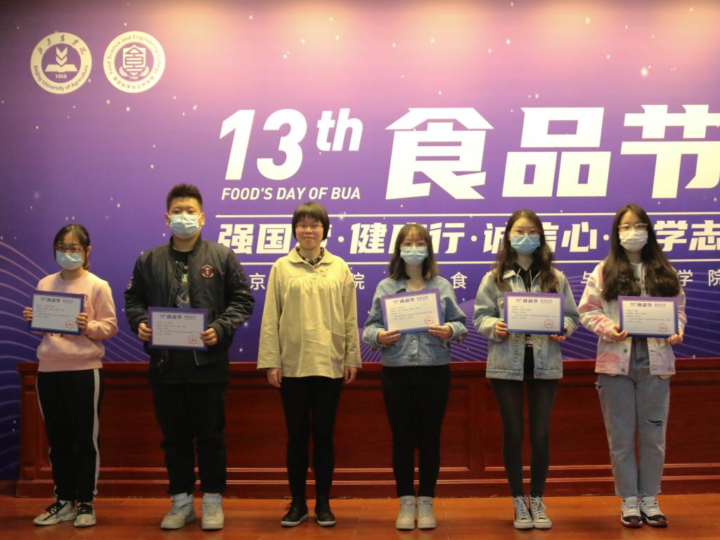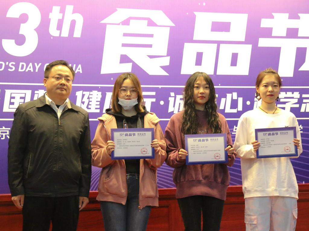 首先,由主持人白天琪代表公司揭晓了304永利集团官网第13届食品节创新创意食品竞赛、食品安全检测竞赛和包装装潢与造型设计竞赛的各个奖项。与会公司领导马挺军、丁轲、王雪、党登峰依次为优秀奖、三等奖、二等奖、一等奖获奖代表颁发了获奖证书。