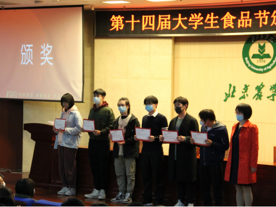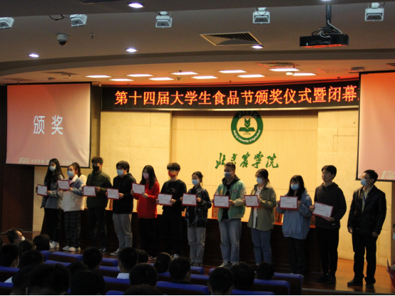 首先由主持人宣读了食品节获奖名单,罗蕊、韩涛、王雪、张红星等老师和员工魏颖依次为最具人气奖、优秀奖、三等奖、二等奖和一等奖获奖代表颁奖。
