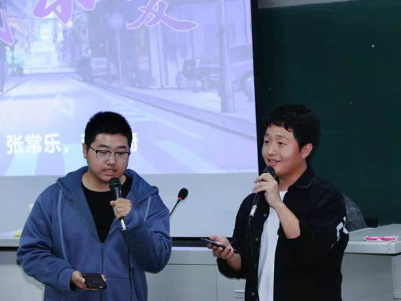 首先由安全二班张常乐和李子骑同学带来的《大城小爱》作为本次活动的开篇,使同学们沉浸在欢快的曲调中。而后,由安全二班朱浩康和杨彦斌同学带来的一首《匆匆那年》,瞬间使我们回忆起往昔青春的模样。
