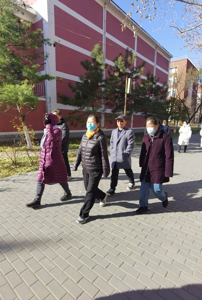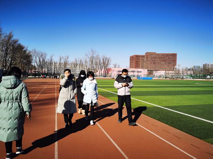 当日在校的会员们根据通知,合理安排了自己的时间,早早于食品楼一层大厅会合,然后从食品楼南门出发,途径第二食堂西门、教学楼B座北门,然后进入操场跑道,进行了长走锻炼,并在操场合影留念。