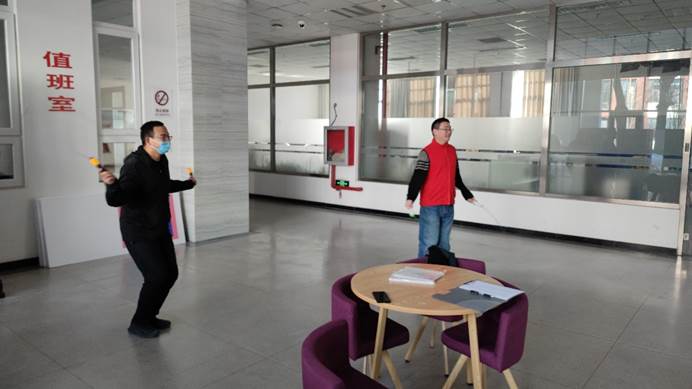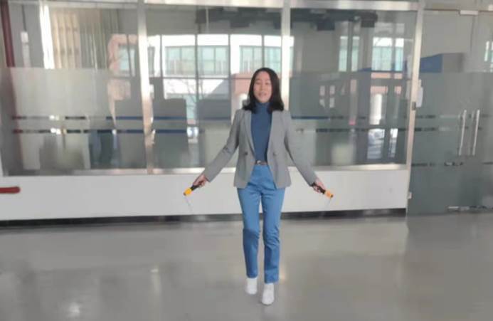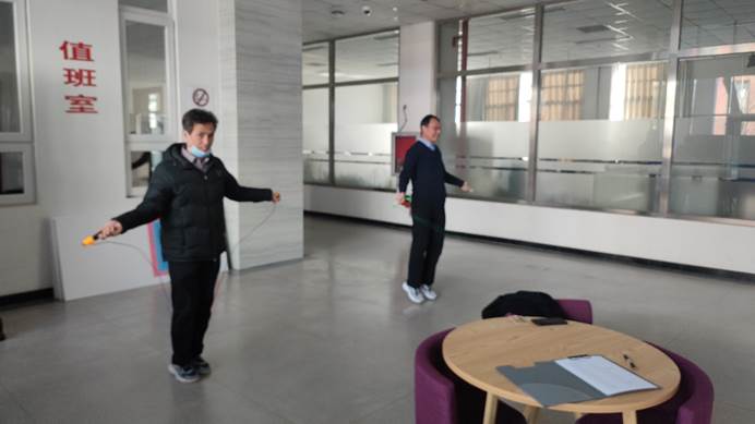 为方便会员们参与,分工会安排了专人带着跳绳、在会员们午饭必经之路食品楼一层大厅等候。跳绳采用单摇单跳,计时两分钟。会员们或独自到场参加,或约上办公室同事一起参加。有跳绳的,有数数的,有鼓掌加油的,还有一起跳着比赛的,为大厅增添了生气,其乐融融。