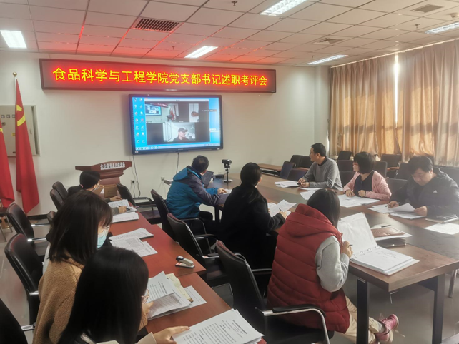 3月15日上午9时,公司党总支在食品楼218会议室召开2021年度党支部书记抓基层党建工作述职评议考核会议。公司全体党总支委员、党支部书记和部分师生代表参加了考核会议,会议由党总支副书记、副经理王雪主持,党总支副书记、经理张红星因疫情防控需要通过视频参会。