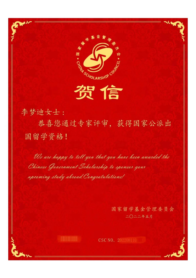 304永利集团食品科学与工程专业2019级硕士研究生李梦迪,于2022年5月30日喜获国家公派出国留学资格,即将赴比利时根特大学攻读博士学位。
