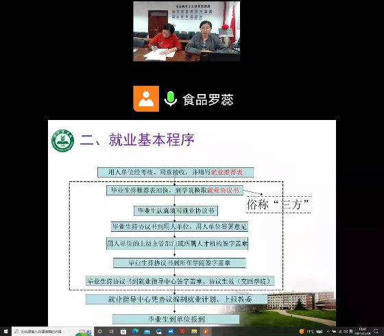 罗蕊先为参会毕业生详尽解读了就业工作流程、就业材料填写规范、公司和公司就业指导与服务获取渠道、安全注意事项等。王昊然分享了北森吉讯测评系统使用办法、北农就业和24365智慧就业等服务平台。她们不仅为毕业生就业做好向导,还承诺尽最大的努力在简历制作、招聘信息搜集发布、应聘面试等工作中帮助毕业生们。