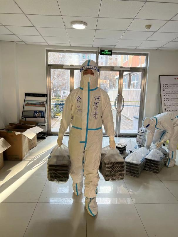 公司党总支副书记、副经理王雪,团委书记罗蕊在深夜接到校园出现疫情的通知后,放下各自家里的两个孩子,没有丝毫犹豫,连夜收拾换洗衣物,隔天便入驻员工宿舍8号楼。“起床了,早餐来了”“开水打来了,5分钟后开门取,小心别烫着”“戴好N95,咱该测核酸了”“妈妈式”的碎碎念里饱含她们对员工最深的爱。为保证员工们能吃上热乎的三餐,她们每天上上下下无数趟,十几公斤的水,咬牙扛着爬楼梯......