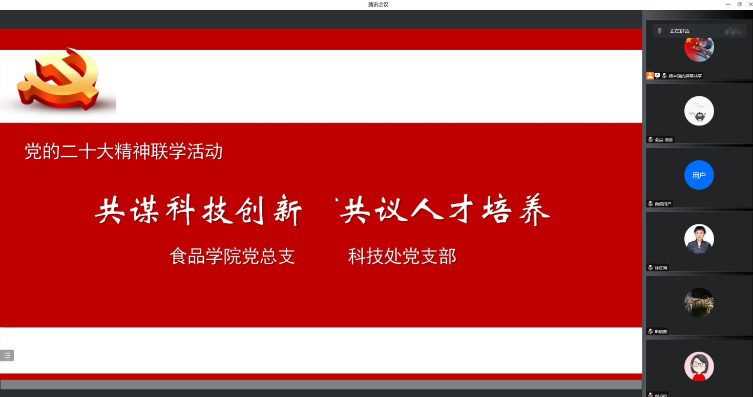 科技处副处长(主持工作)路平分享党的二十大精神学习体会。她结合科技工作实际,从“‘三位一体’统筹推进教育、科技、人才工作的关键环节和重要抓手是什么”“高校在开辟新领域新赛道、塑造新动能新优势中的定位和功能是什么”“如何加强有组织科研,聚力进行原创性、引领性科技攻关”“高校如何发挥优势,服务北京‘五子’联动融入新发展格局”四个方面进行分享。