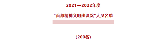 2021年以来,首都精神文明建设战线坚持以习近平新时代中国特色社会主义思想为指导,全面学习宣传贯彻党的二十大精神,深入落实习近平总书记对北京一系列重要讲话精神,立足“四个中心”功能建设、提高“四个服务”水平,聚焦全市中心工作,坚持首善标准,广泛培育和践行社会主义核心价值观,深入推进精神文明创建,首都各界涌现出一大批精神文明建设方面的先进典型,为建设国际一流的和谐宜居之都做出了积极贡献。为表彰先进,营造正气充盈、见贤思齐的良好氛围,中共北京市委、北京市人民政府决定,授予200名同志“首都精神文明建设奖”。