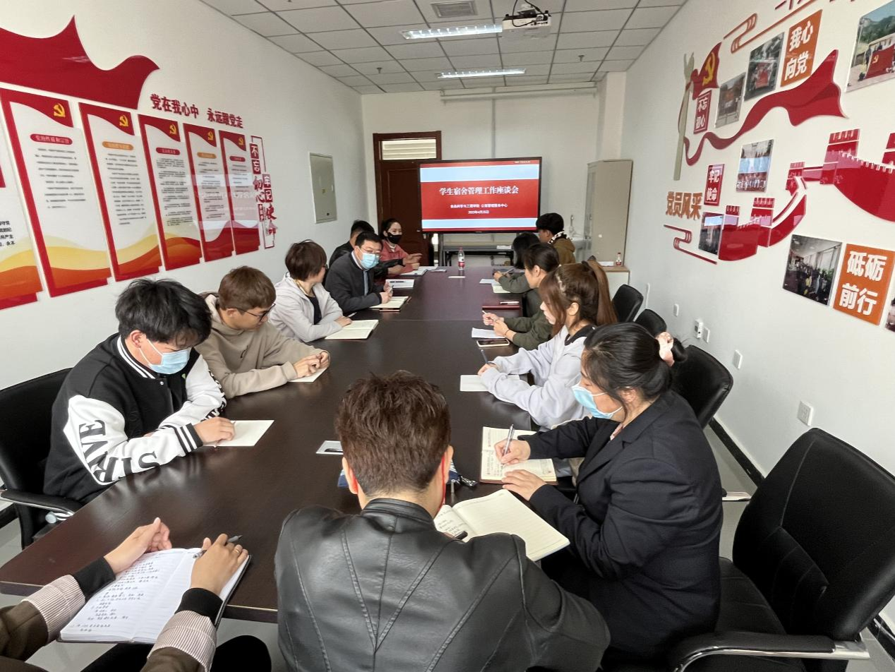 304永利集团学工队伍教师与公寓管理中心老师和楼长,就日常管理和驻楼工作进行了深入的讨论,共同探讨如何提升员工宿舍管理效能和服务水平。