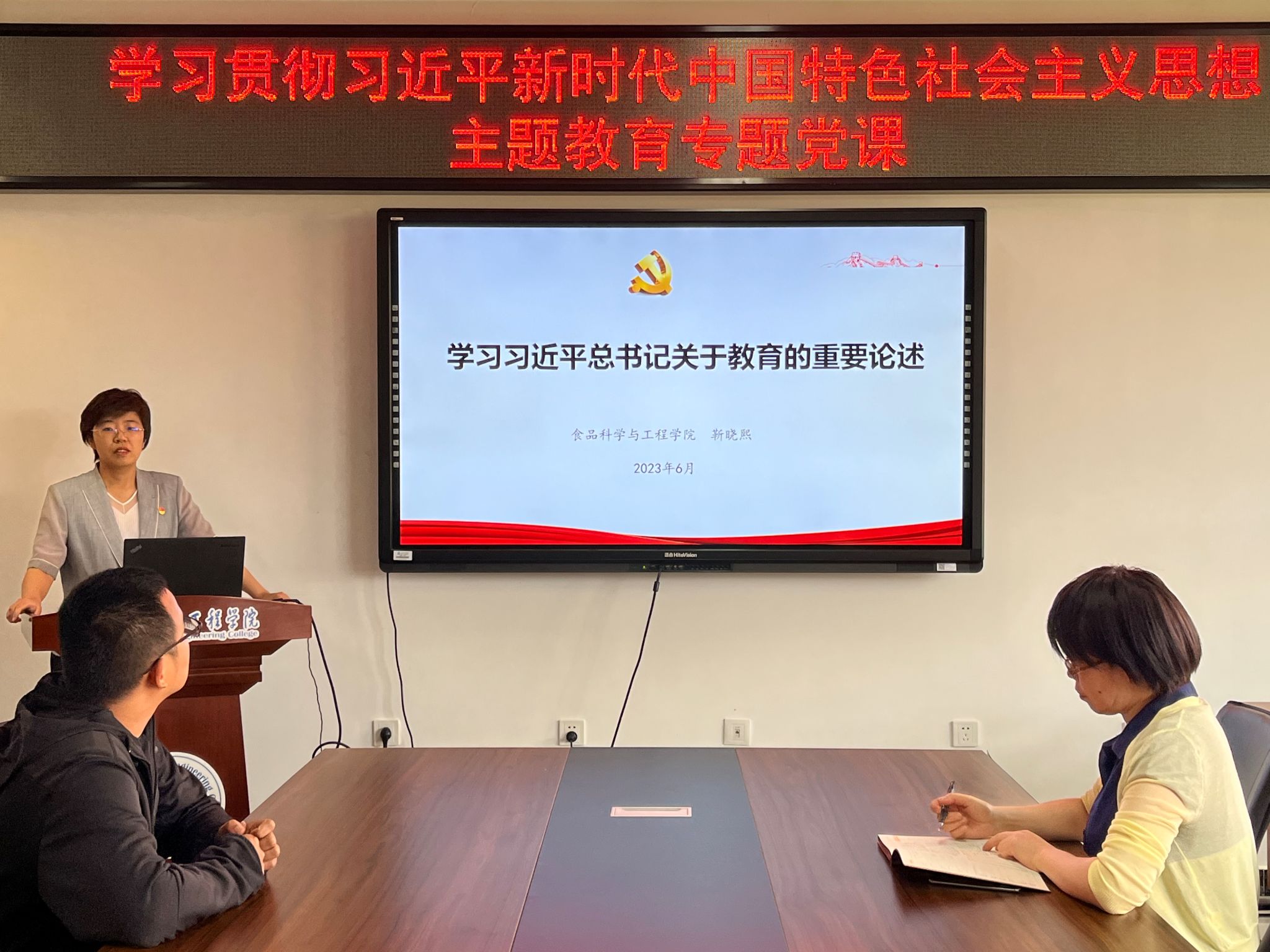 按照公司党委关于学习贯彻习近平新时代中国特色社会主义思想主题教育的部署安排,6月7日,公司党委书记靳晓熙,党委副书记、经理张红星分别以“深入学习习近平总书记关于教育的重要论述”“扎实开展主题教育 推动学科高质量发展”为题,带头讲授主题教育专题党课。公司全体教师参加党课。