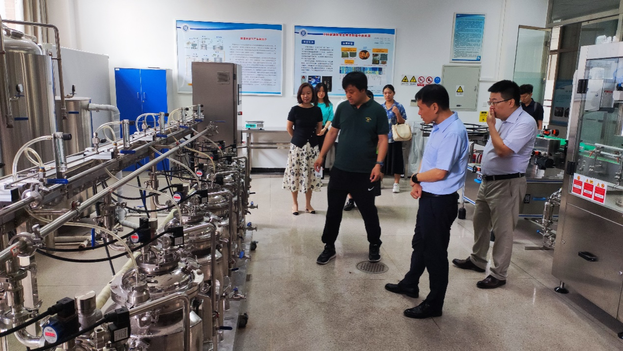 会前,丁轲带领郭新光一行参观了公司粮油加工、果蔬贮藏加工、啤酒、葡萄酒酿造以及益生菌中试车间。