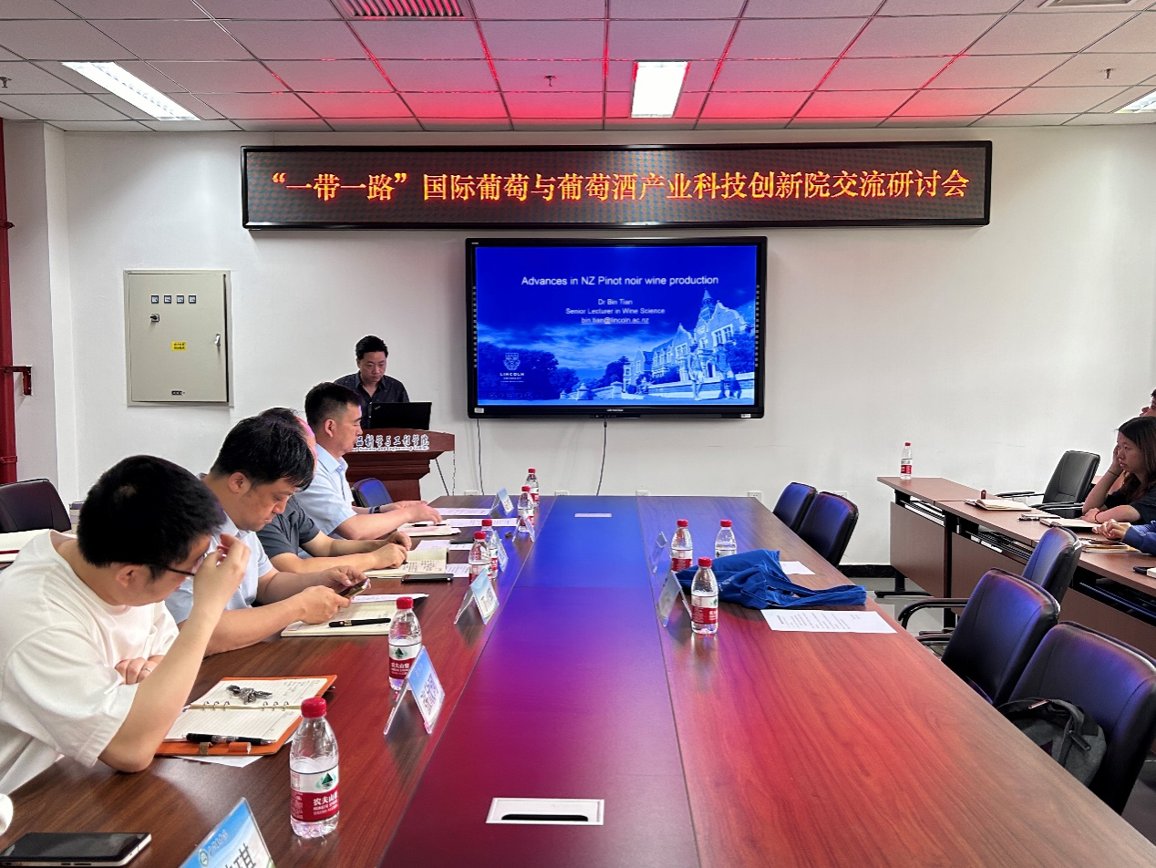 近日,“一带一路”国际葡萄与葡萄酒产业科技创新院与新西兰林肯大学葡萄酒系举行学术交流研讨会。本次会议旨在加强两校在食品科学与酿酒领域的合作与交流,增进双方教师和员工的学术互动与友谊。来自新西兰林肯大学葡萄酒系的田斌老师和Jeff Sun老师,304永利集团经理张红星、副经理丁轲、酿酒系全体教职工、葡萄与葡萄酒专项班研究生参加了会议。