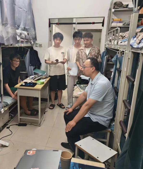 食品科学与工程教师党支部书记孙运金副教授走进9号楼229宿舍,他认真倾听同学们的专业学习情况,关切地询问了大家在日常生活中的困难和需求。针对员工提出的学业困惑、就业方向、宿舍生活条件等普遍性问题,孙运金建议同学们提前了解有关自己未来就业方向的信息,夯实自己的实习技能,在学习过程中主动思考,积累经验智慧。