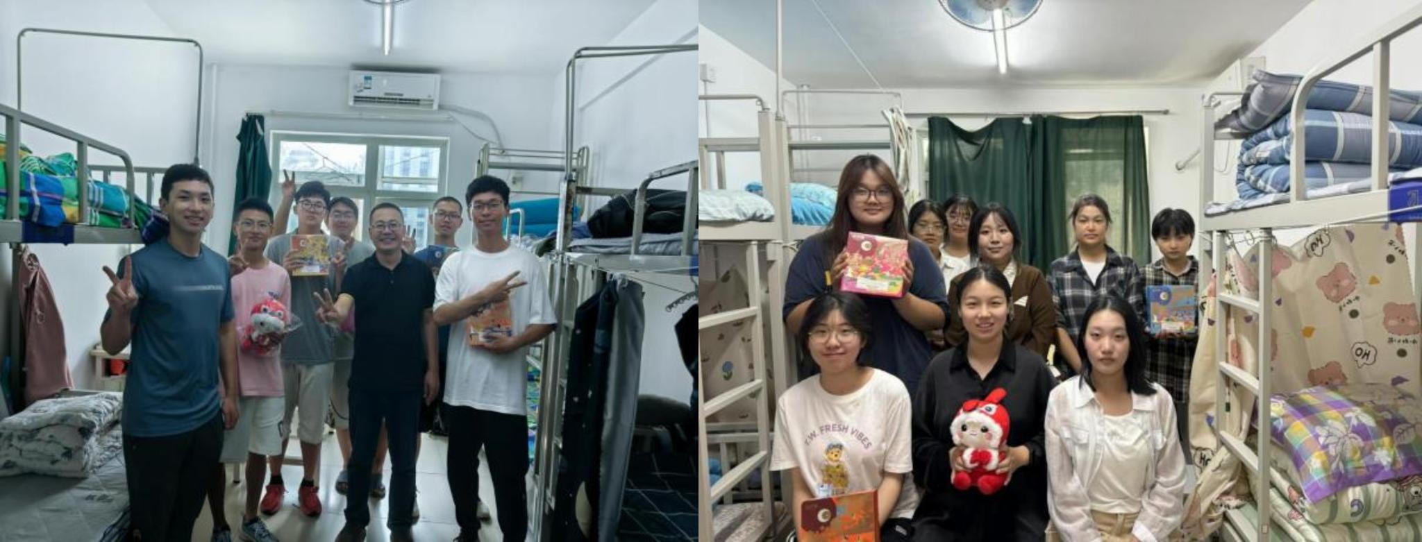活动结束后,闻海洋、官凌霄带领班助到员工公寓9号楼、7号楼看望中秋期间留校的新生同学,详细询问了解了同学们入校后学习生活情况,同学们畅所欲言,纷纷就自己生活中的问题向老师们进行询问。闻海洋、官凌霄详解答同学们提出的各种问题,对于同学们在军训期间的良好表现给予了充分肯定,并为同学们送上节日祝福和美味的月饼。