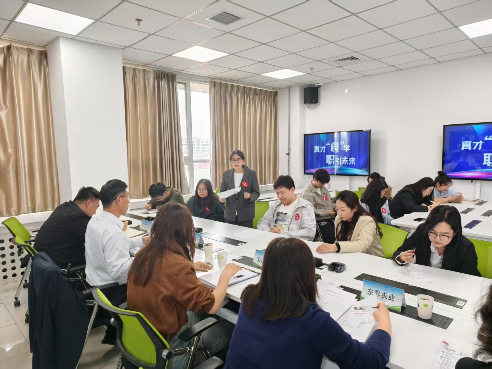 自我介绍环节,选手依次进行1分钟自我陈述与2分钟评委提问,展现专业背景、实践经历与职业规划。北京稻香村食品有限责任公司党委书记、副总经理梁硕、北京燕京啤酒集团有限公司人力资源部部长崔燕青、东昇农业技术开发(集团)有限公司人力资源部部长刘冬雪、昌平区生命谷生物样本转化研究院人力资源总监黄留芳、公司就业指导中心干部帅勃宇等评委从专业素养、应变能力等维度点评指导。